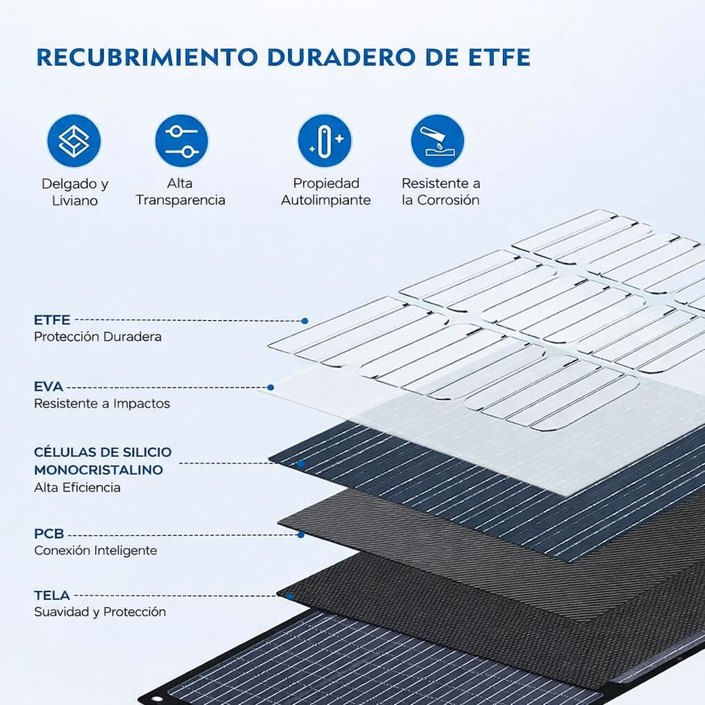 – Estructura Reforzada: Combinación de ETFE, fibra de vidrio y lámina trasera de PCB para una durabilidad estructural inigualable.